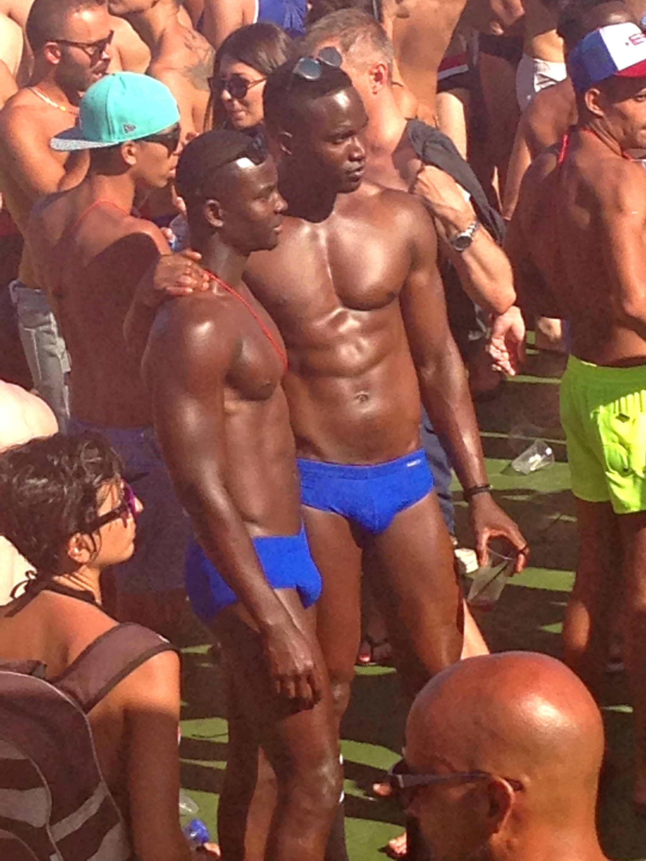 I took a few selfies with random people and exchanged a few numbers for later. There was a particular guy I saw wandering around, wide-eyed and looking lost. He was average height, defined body, wearing a pair of stars and stripes swim trunks, which he filled out both anteriorly and posteriorly, but mostly the latter. Above the noise he introduced himself as Marco and he was stoned out of his head but somehow lucid, though it took him 5 mins to punch his number into my phone. He gestured for me to follow him to one of the toilets for a shag. I declined his kind offer, since he was stoned out of his mind and mostly because the lines to the toilets were at least an hour long with people wanting to go in to have sex and/or take drugs. He wandered off again – On to the next one!